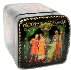 Description: This five-sided casket is a creation of talented Palekh artist Belousova Galina whose favorite themes to depict are folklore and genre scenes. Casket shows several episodes from tale of Ivan Tsarevich and a Gray Wolf.