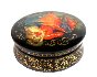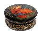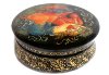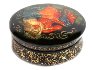 The box is made of paper-mache. Black lacquer is used to paint the exterior of the box, while red one is compliting the exterior of it.The box is not hinged. The work is signed with the name of the artist, and the village of Palekh and 2017.