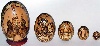 Description: This splendid set of Easter eggs inserted into each other like nesting dolls has been made in the ancient Russian town of Sergiev Posad by the talented master Listunov O. The work is dedicated to the recognizable symbols of Moscow and Russia, such as the Moscow Kremlin and its world-famous buildings, and the coat-of-arm of Russian Federation.