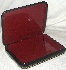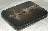 The box is constructed from paper-mache. Black lacquer is used to paint the exterior of the box while red lacquer completes the interior of the work. A hinge is fastened to the left of the scene, and the box rests on a flat bottom. Signed with the artist's pseudonym (Loris), and the village of Fedoskino.