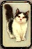 On this box the artist has painted a black-and-white colored cat pronouncedly