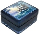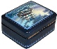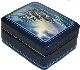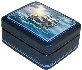 The box's exterior is covered with a mixture of a silver and blue colors paint. The composition is framed with blue lines and two parallel lines are decorated the box's sides.
