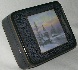 The box is constructed out of paper-mache. The lid is hinged from the top of the scene, and the box rests on a flat bottom. The work is signed with the artist's name.