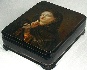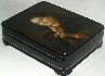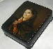 Description: This beautiful portrait of an enigmatic lady with a mask was painted by Dmitriy Bebikhov of Fedoskino. It is a close up adaptation of Sergey Gribkov's (1822-1893) original painted in the second half of the 19th century. The photo-quality of this portrait is hard to ignore, which is a testament to the classical training Bebikhov went through enabling him to paint in this manner.