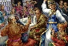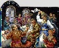 Description: Pavel Govorun from the village of Fedoskino created this magnificent box. It is called "Vasilisa the Beautiful", and features the Tsar's feast including numerous of guests ,court jester playing his tambourine, and the main character-