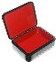 The scene is outlined with gold line. The box's exterior is painted in black lacquer. The interior is traditionally red.