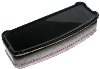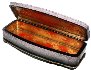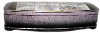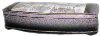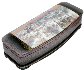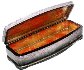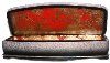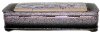 The box's exterior that is free from painting is covered with light grey paint; and this light gray area is studded with tiny dark grey veins. The box's interior is traditionally red and decorated with gold leaves, that are glued inside.
