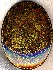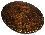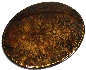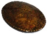 This brooch shows several flowers painted with a thin brush in gold against the beautiful background painted also in gold paint with the addition of brown paints. The edges of the brooch are decorated with elegant gold pattern that consists of gold beads of different size. The backside of the brooch covered with black lacquer has a big pin to be attached to your clothes. This stylish brooch will perfectly decorate your costume! The work is signed with the artist's name, the village of Palekh and the year of 2004.