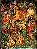 At the top of the composition we can see the King and the Queen's in the beautiful garden, among the bright flower-beds and the cool fountains where Alice found herself. A large rose-tree stood near the entrance of the garden: the roses growing on it were white, but there were three gardeners at it, busily painting them red... And we can see Cheshire Cat, who is appearing and disappearing in the crown of the tree...