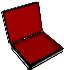 The box is constructed from paper-mache. Black lacquer is used to paint the exterior of the box and red lacquer for the interior. The box has a hinge located to the top of the composition and rests on four legs. The work is signed and dated (2011) by the artist.